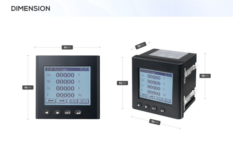It can replace traditional analog or multiple digital measuring instruments (such as ammeter, voltmeter, power meter, power factor meter, frequency meter, etc.), integrates advanced electrical parameters and recording functions, and can replace general energy recorders for real-time measurement and online monitoring , which has the advantages of improving system reliability, facilitating on-site wiring, and reducing system cost.