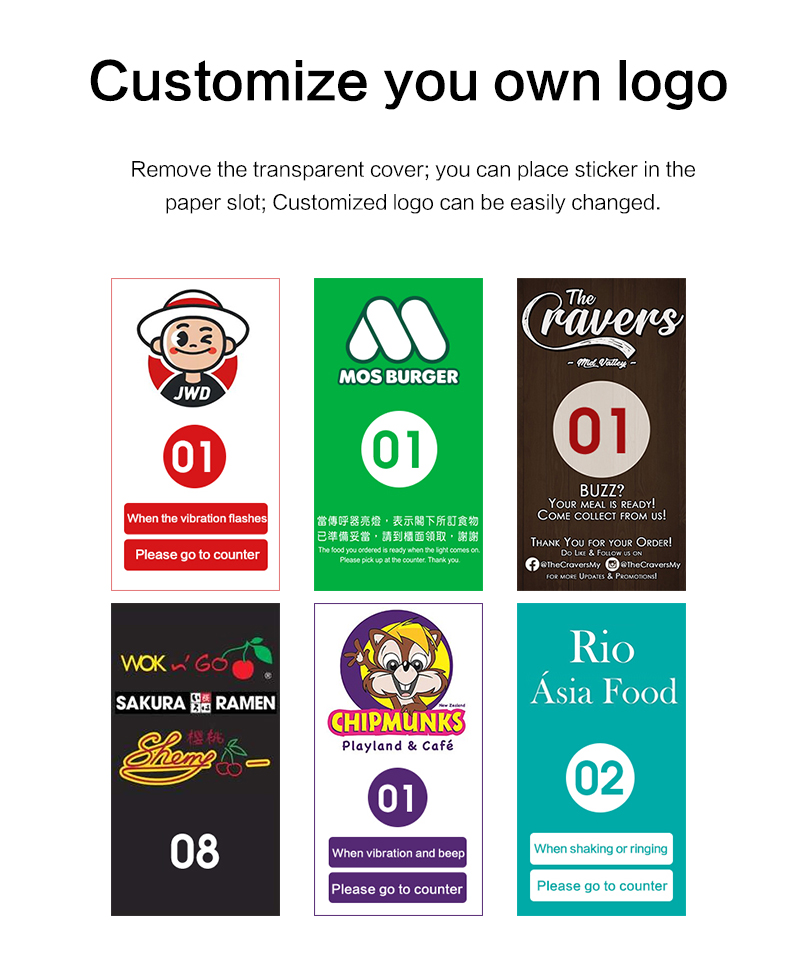 Custom Logo Printing Wireless Paging System Restaurant Pager For Restaurant Church Queue