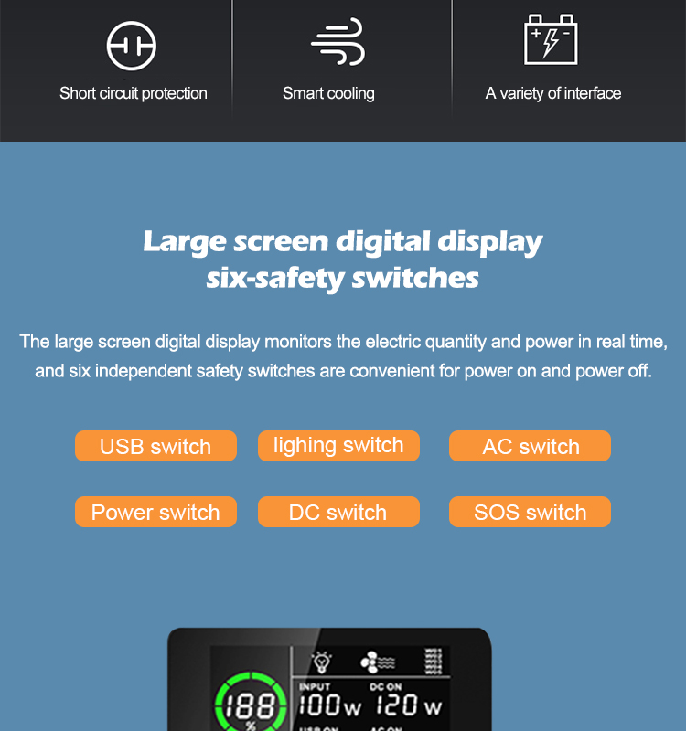 | AC output: | 110V±10%/60HZ; 230V±10%/50HZ | Battery Type: | Li-ion, lead acid, LiFePO4 |