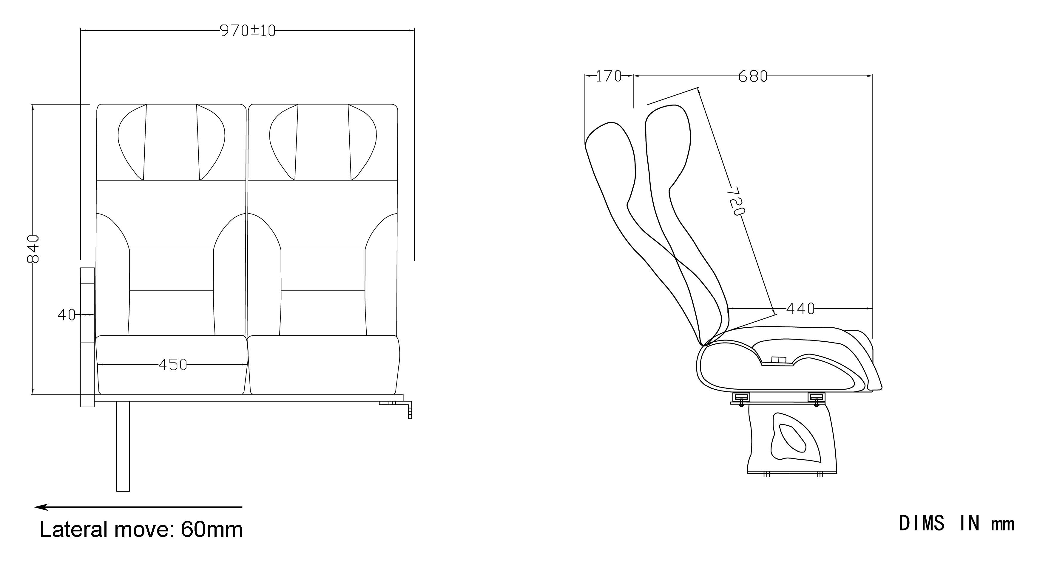 | Optional accessories: | Seat belts, tables, USB plugs, pedals, sideways movement, etc. | Standard accessories: | handles, pockets, reclining backrest, iron base, foldable armrests |