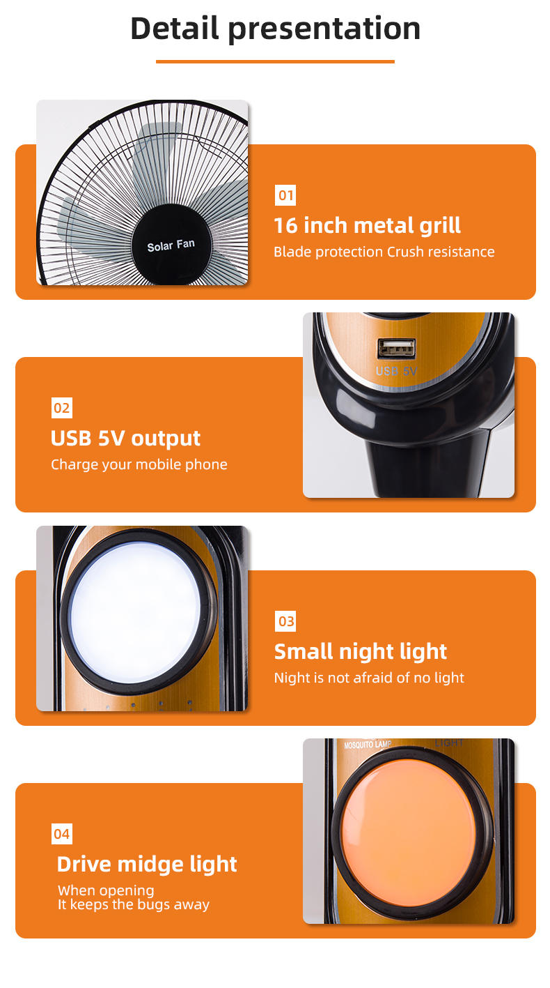 functional mode | - | USB+night light | Remote control or button control, charging indicator light, gear position display, 5v bulb output, weak or strong night light, USB charging interface | Remote control or button control, charging indicator light, gear position display, low or strong night light, USB charging Interface, Mosquito Repellent Lamp | |||||