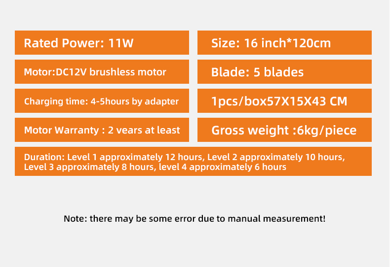 fan size | 16 inches, height 120 cm, width 45 cm | ||||||||