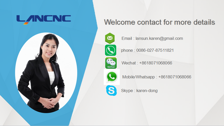 CNC system: 1).10.4 inch LCD screen 2). Metal operation key 3).USB interface support, digital display 4). Working status indicator light display 5). The operation menu is displayed on the monitor immediately 6).Mass production 7). Simple digital direct programming 8). Not subject to interference from electromagnetic waves, etc. 9). Pause, forward, backward, movement while working with the machine