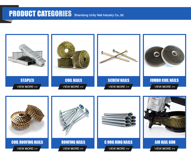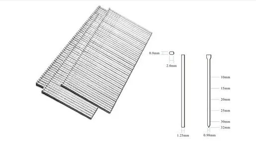 T nail seriesTechnical Description Material: 1.49mm(0.059") Galvanized wire Galvanized layer thickness 0.7-1.0pm Width: 1.57mm(0.062'') Thickness: 1.25mm(0.049") Sharp angle: 40° Specifications: 17 80 wires/row Uses 1. Connection and production of wooden furniture. 2. Fixing of drawing frame and structure. 3. Construction and repair of platform roofs and mobile homes. 4. Binding of boxes and boxes.
