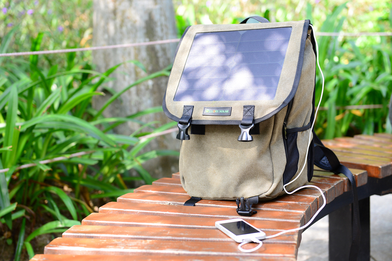 China Factory Travel Camping Use Lightweight Army Green Solar Backpack with USB Phone Power Bank