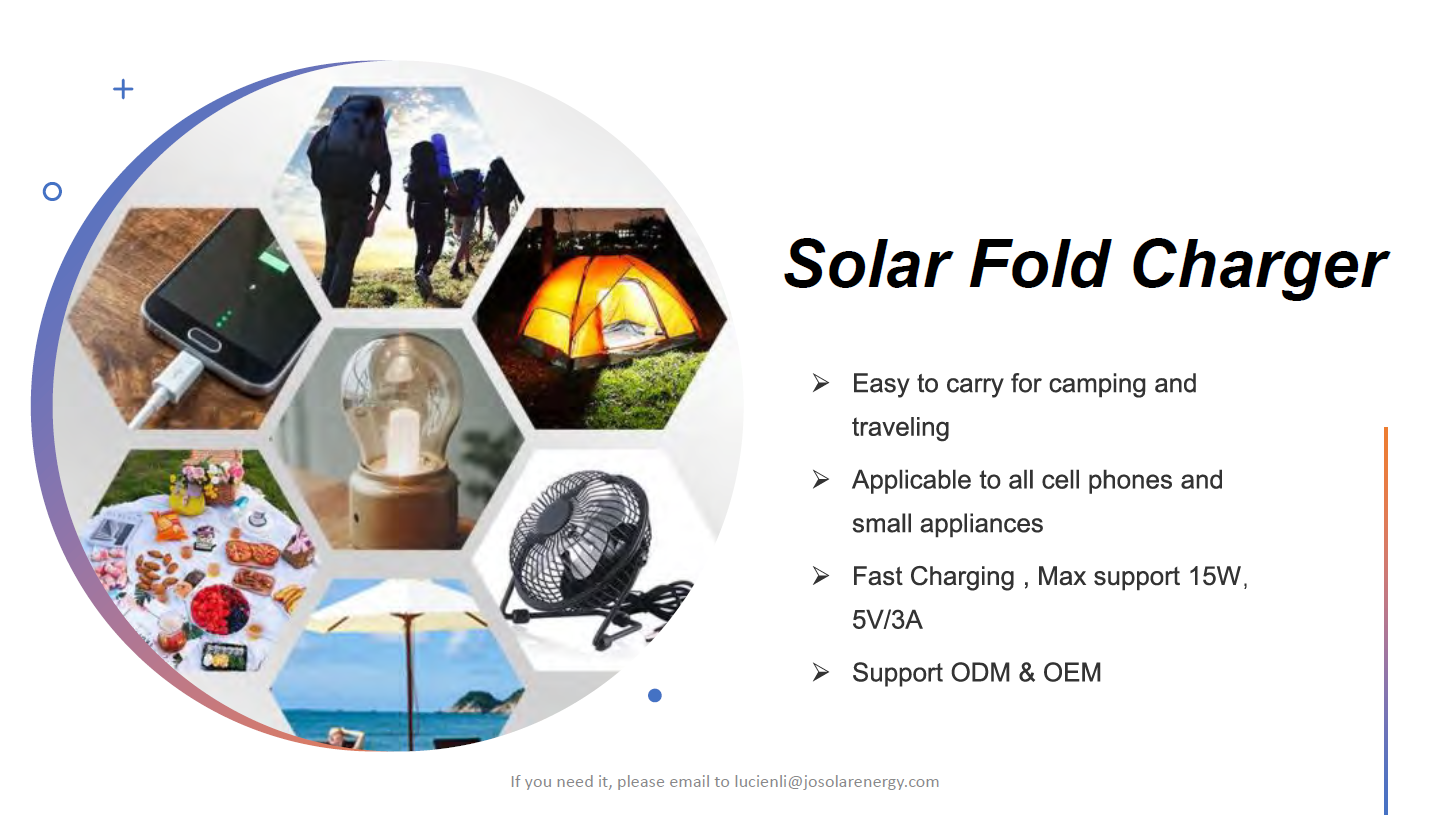 2. Wide compatibility:With a USB output port, it is compatible with all 5V USB charging devices, including smartphones, Bluetooth headsets, cameras, etc. Users can store solar energy with a power bank as a backup. Use it when you go camping, hiking, or find yourself in an area with low power.