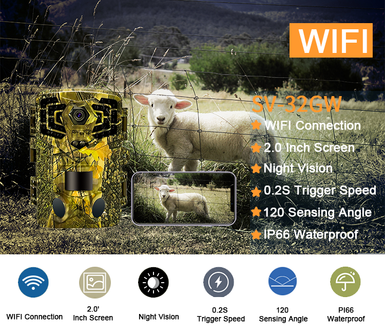 | Video resolution: | 4K | product name: | Night Vision 32MP 4K Wireless GPS Camouflage WiFi Tracking Hunting Camera |