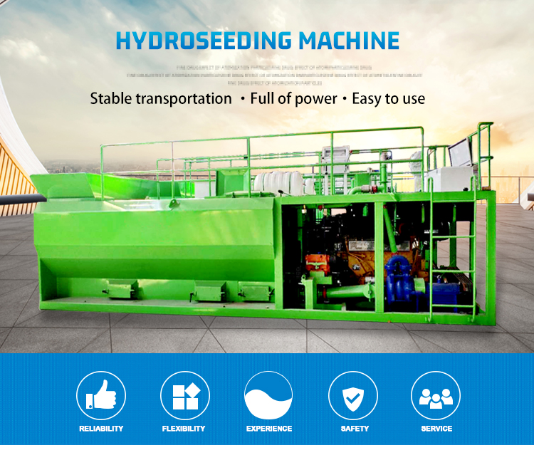 Spray seeding machine, dry spraying machine, ground pump spraying machine are three kinds of equipment commonly used at present.Slope greening construction. The dry spraying machine itself has no conveying capacity and needs to be used in conjunction with an air compressor, and the overall construction cost is relatively high. The working efficiency of ground pump wet spraying machine is low. The hydraulic sprayer has high working efficiency and uniform spraying, and has become an effective way of planting vegetation in greening projects such as road and railway slope greening, mine greening, desert control, river embankment protection, and large-scale green space transformation.