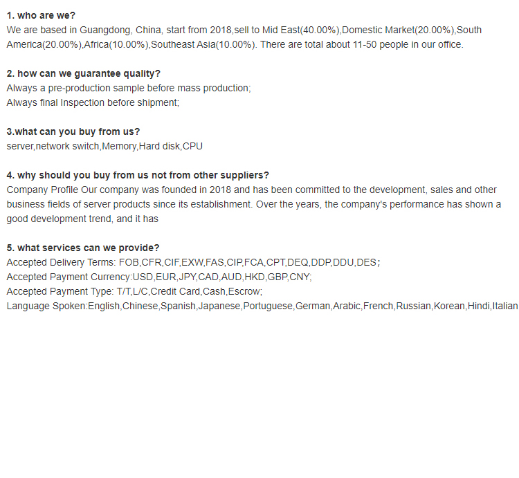 | payment terms: | wire transfer | Components: | 2U rack server |