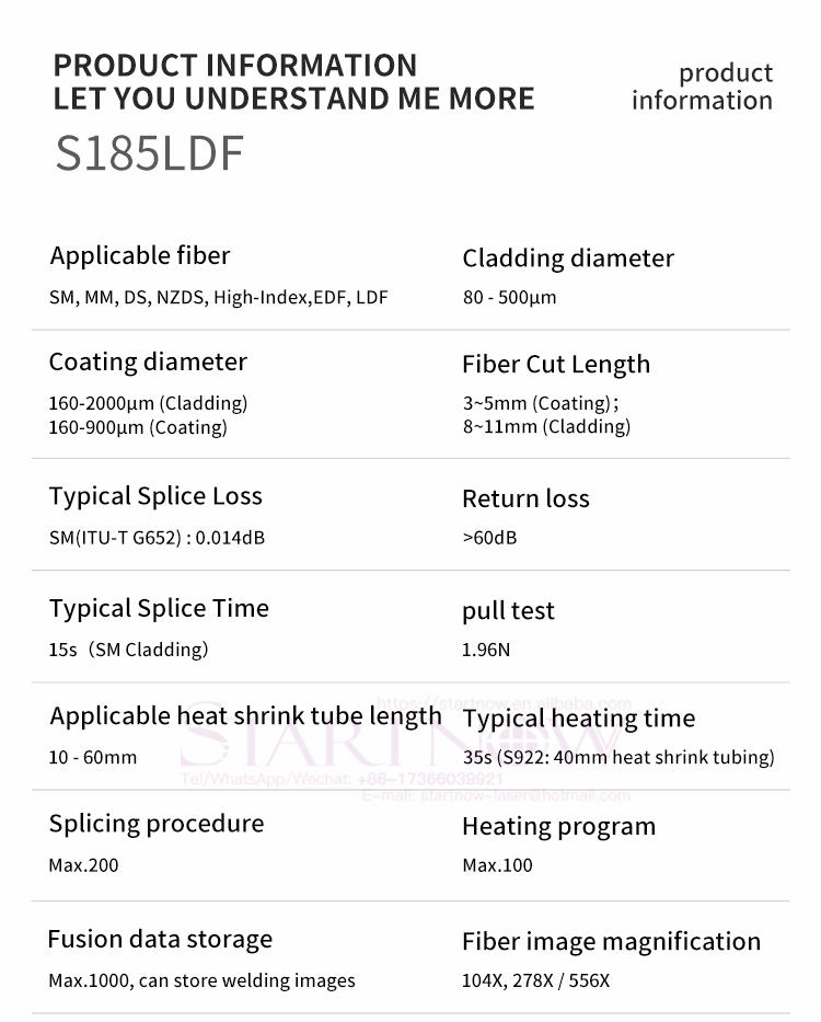 Cladding diameter: S37(125-500um), S185LDF(80-500um)