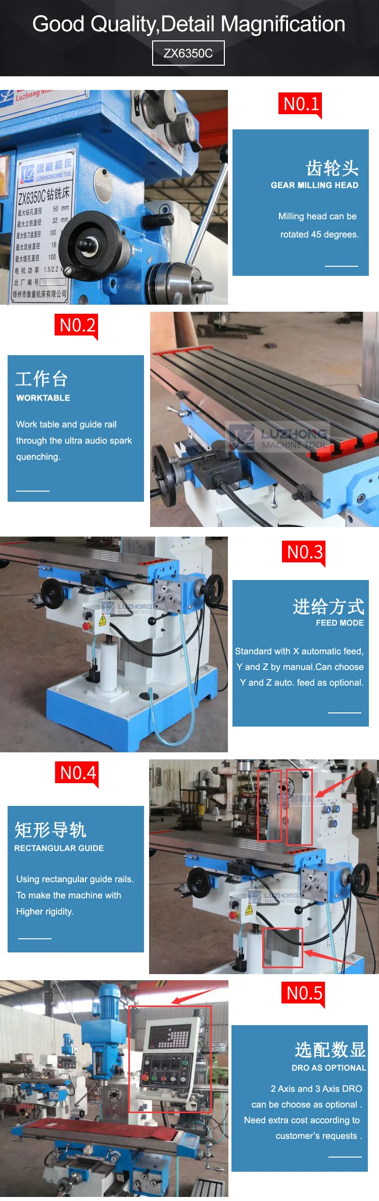 | Key Selling Points: | Competitive Price; | Product Name: | Drilling milling machine ZX6350A Drilling and milling machine; |