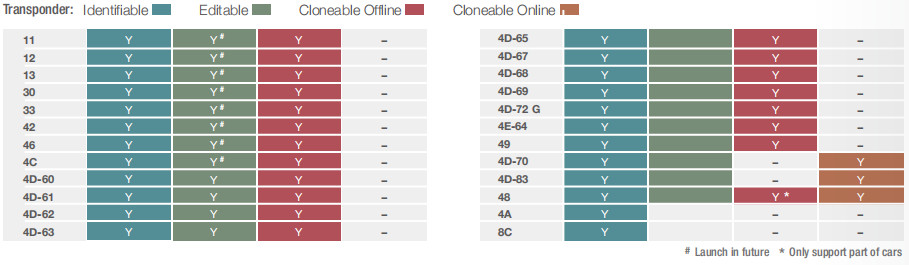 Detect most anti-theft transponders Edit and clone common transponders on the market