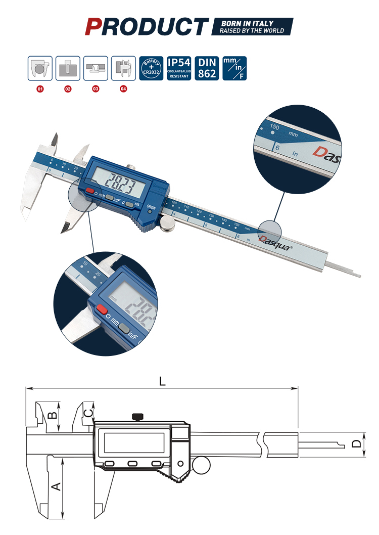 Product name: Dasqua stainless steel 0-150mm IP54 waterproof digital caliper