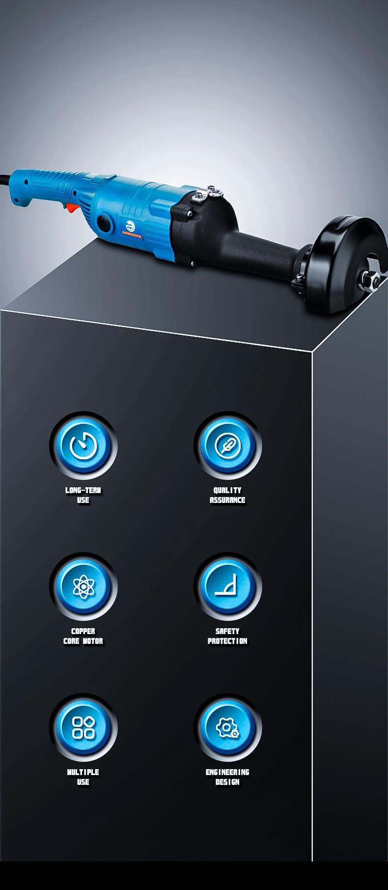 | Packaging details: | One color box per set: 61*15.5*12CM Four sets per main box: 63*33*26CM Industrial long-handle 5-inch 125mm electric straight grinder | Warranty: | 1 year |