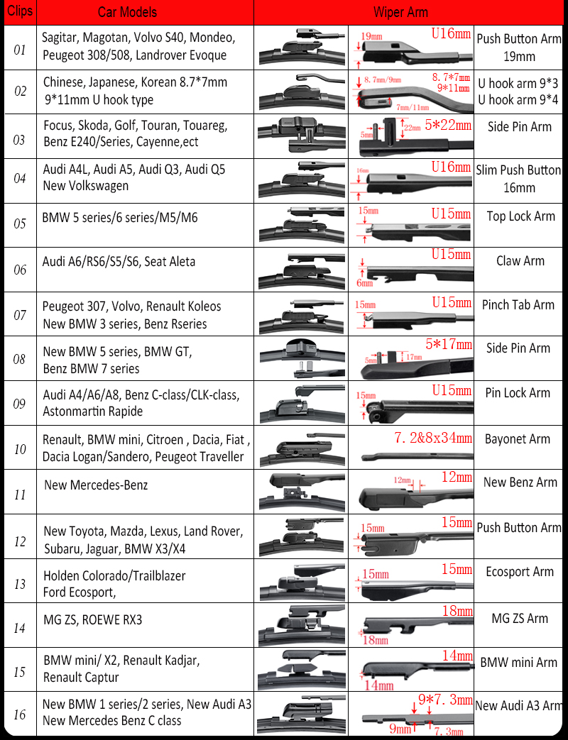 | application: | 99% of vehicles on the market | Material: | Spring steel and natural rubber refills |