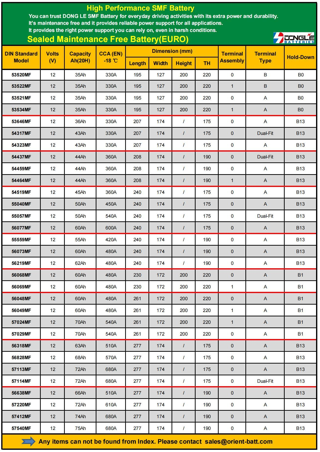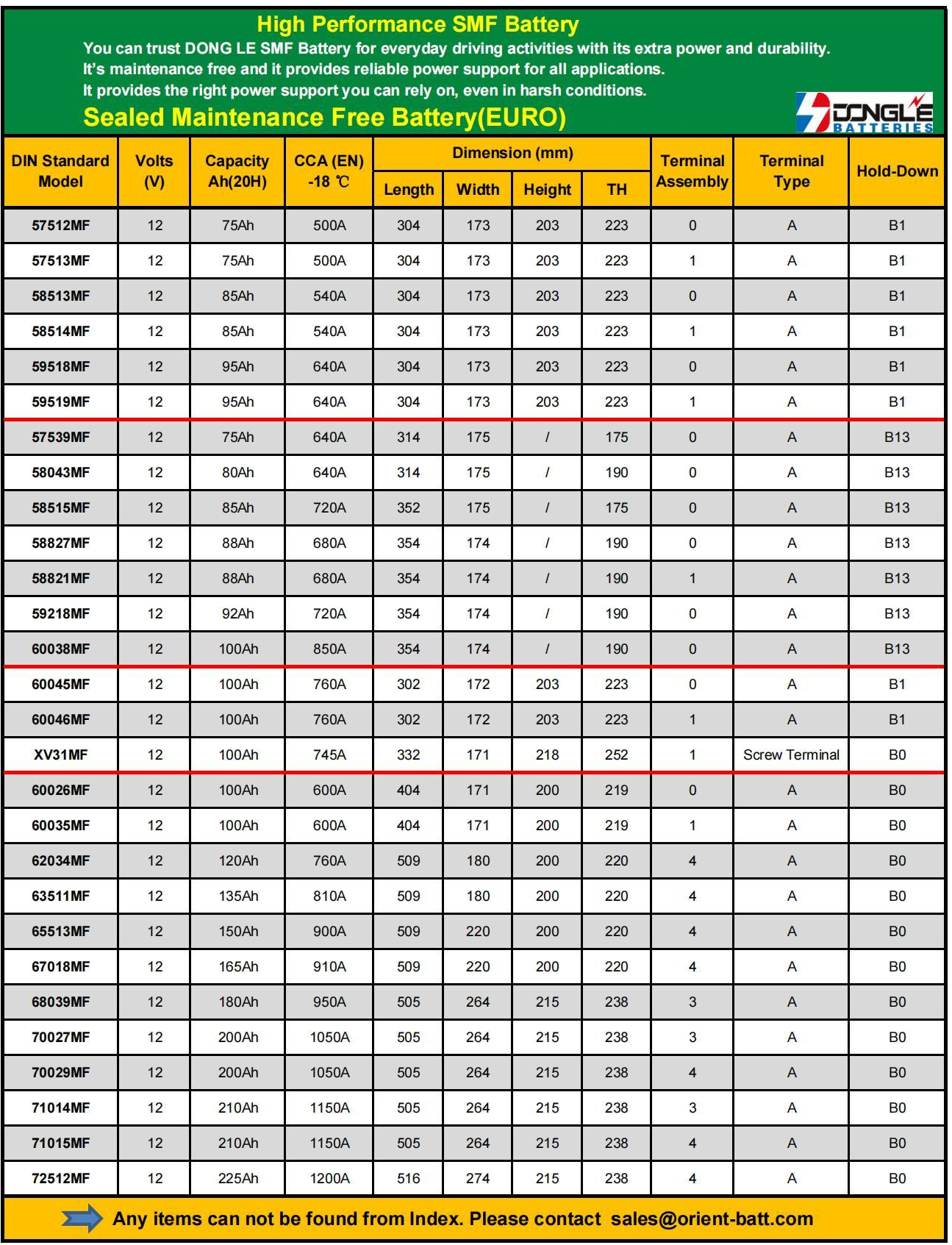 | model: | DIN80MF 12V80Ah | Packaging details: | 1. The label is designed to be attached to the front and top of the battery. 2. Packaging: colored cartons, ordinary cartons or bare packaging. 3. Pallet packaging or container bulk packaging. 4. Loading quantity of 20-foot container: 1600-1900 pieces mixed! |