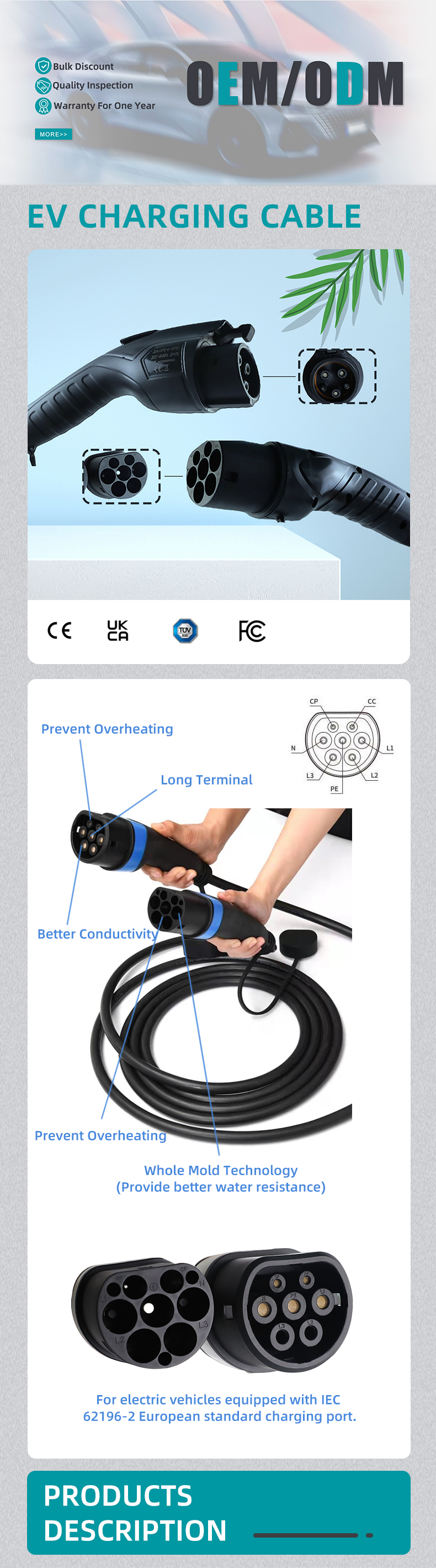 | Protection level: | IP65 | product name: | Electric vehicle charging cable |