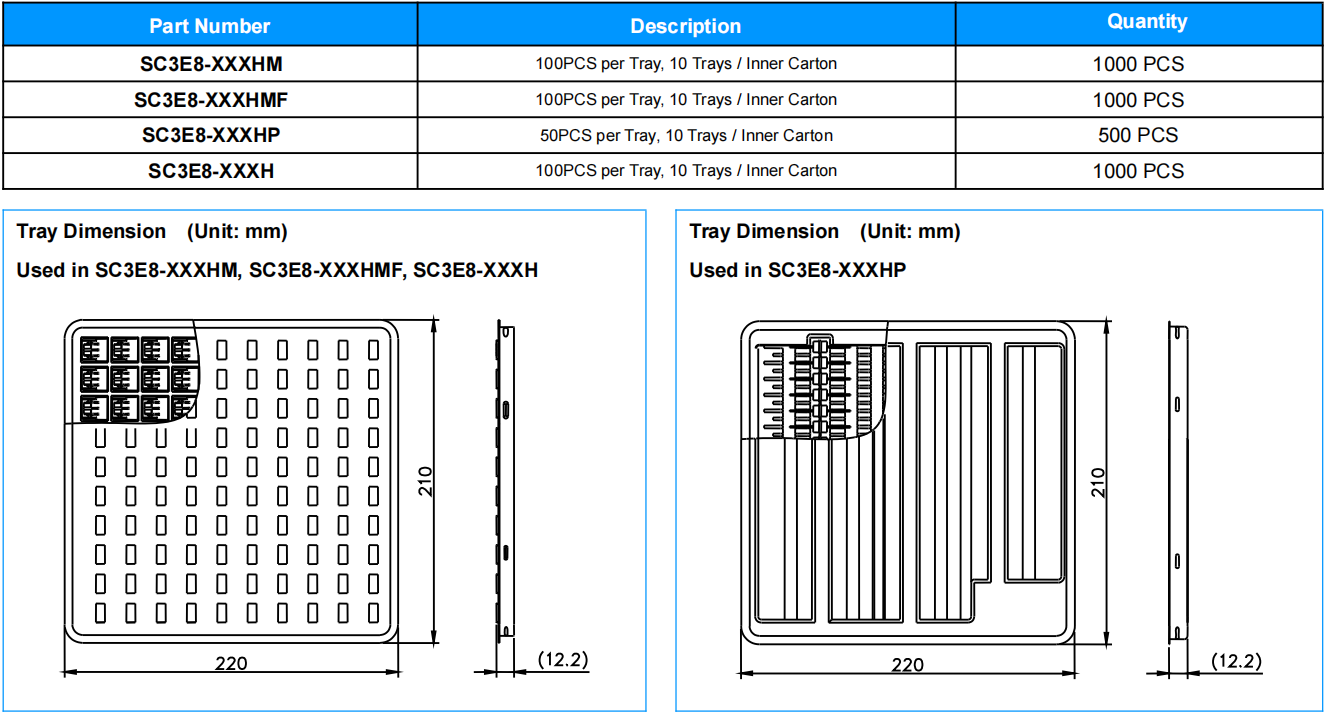 weight | SC3E8-XXXHM ~2.0g SC3E8-XXXHMF ~2.3g SC3E8-XXXHP ~2.1g SC3E8-XXXH ~1.8g |