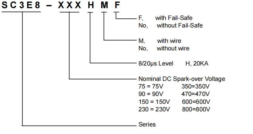 feature | -Non-radioactive -Compliant with RoHS directive -Low insertion loss - Excellent response to fast rising transients -Ultra low capacitance -20KA surge capability test 8/20μs - Pulse defined by IEC 61000-4-5 - Thermal fail-safe option available (add "F" suffix to part number) |