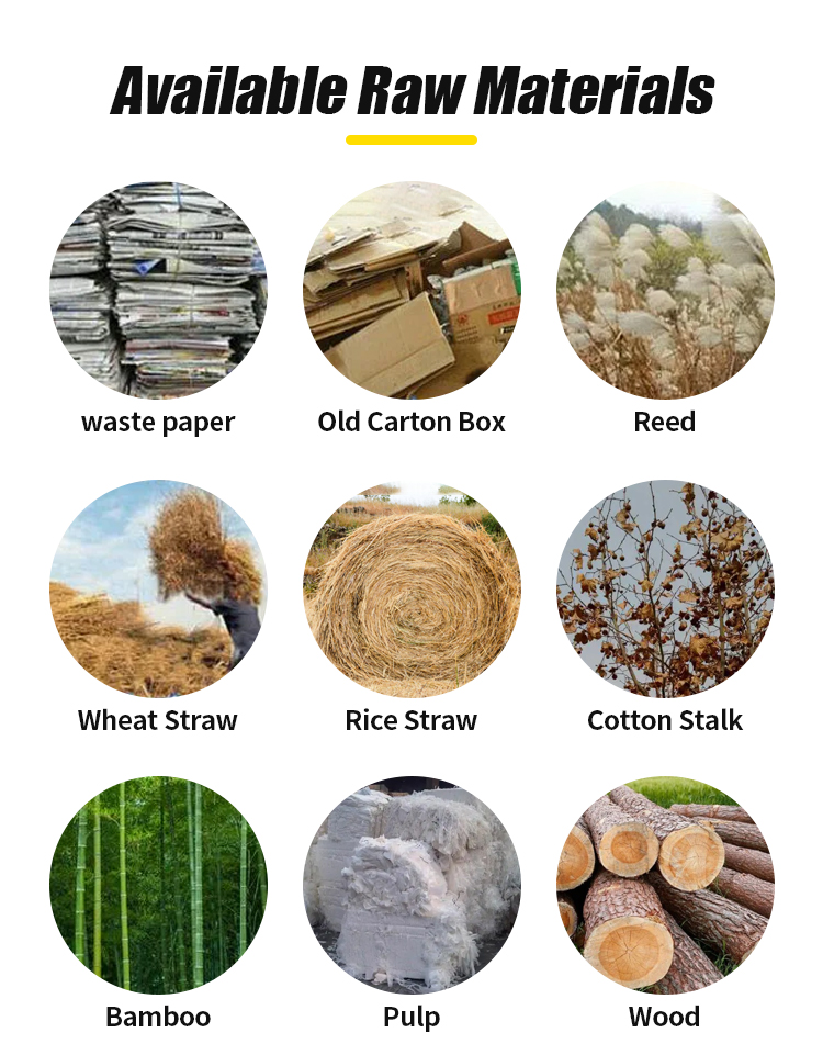 raw material | Waste paper, raw pulp, wood, bamboo, bagasse, flax, etc. | 250m/min | 250m/min | 250m/min | |||