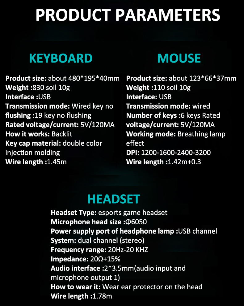 | Keycap material: | Two colors | Number of keys: | 104 (key) gaming keyboard |