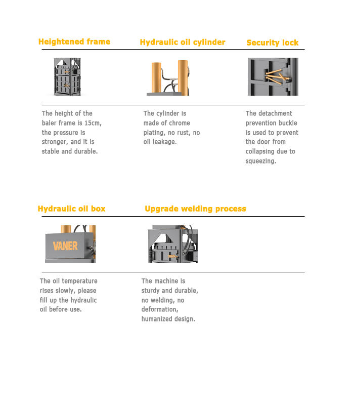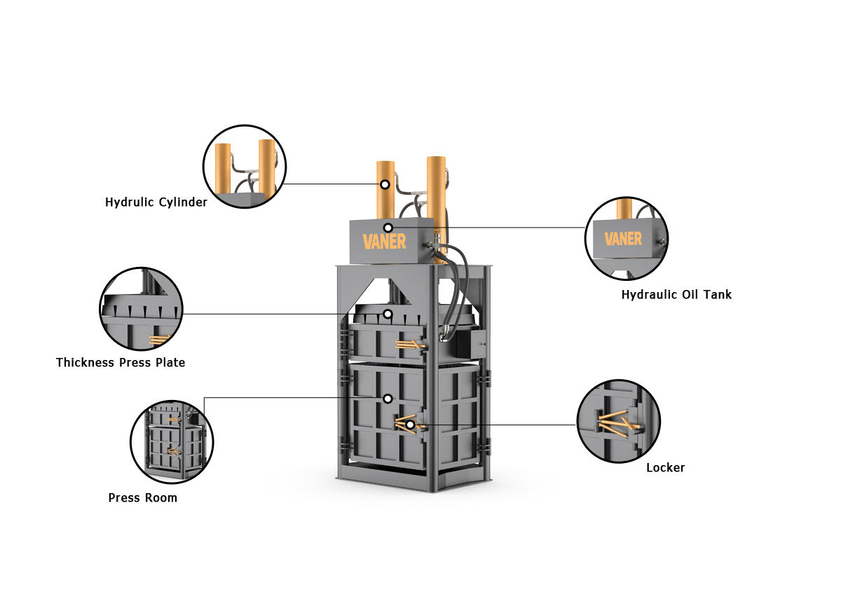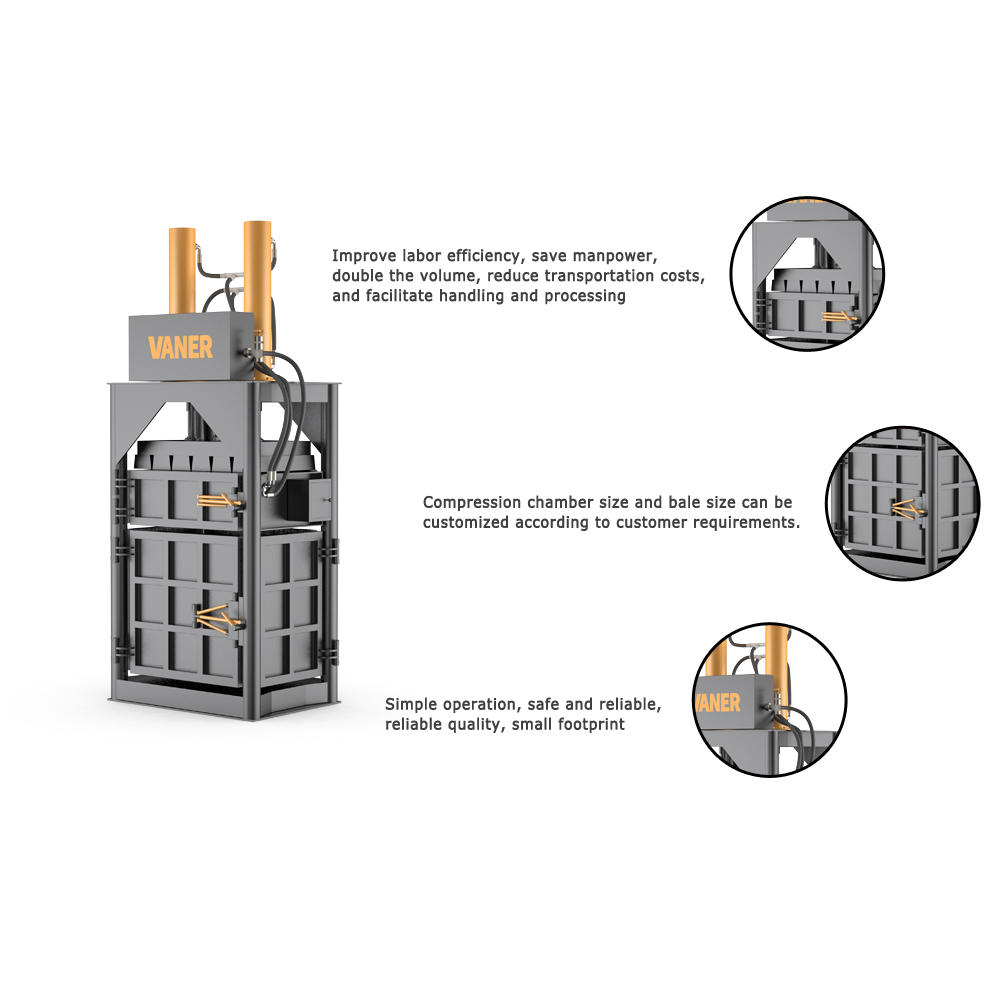 VANER hydraulic vertical balers are mainly used to cold-bundle and pack various thin plastic black and non-ferrous metal scraps into compact rectangular blocks for easy storage and transportation. It is an ideal equipment for metal waste treatment in steel plants, non-ferrous metal plants and smelting plants.