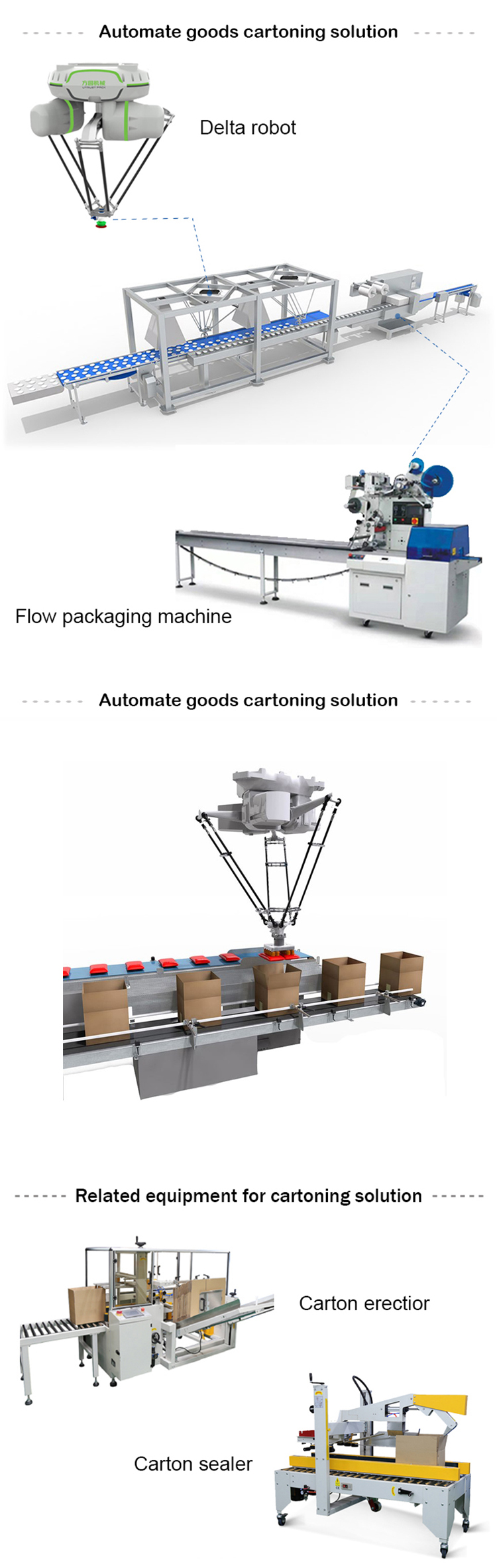 | Core component warranty: | 1 year | Packaging details: | Intelligent automatic Delta robotic arm packaging machine Delta robot picks and places stand-up bags into cartons 1. Inner packaging: stretch film. 2. Outer packaging: standard export wooden box (packaging according to the specific legal requirements of the customer's country). |