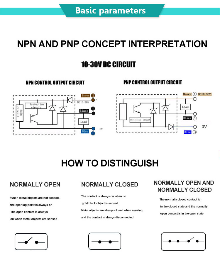 Action mode: | 1.NPN outputs low level, 2.PNP outputs high level |