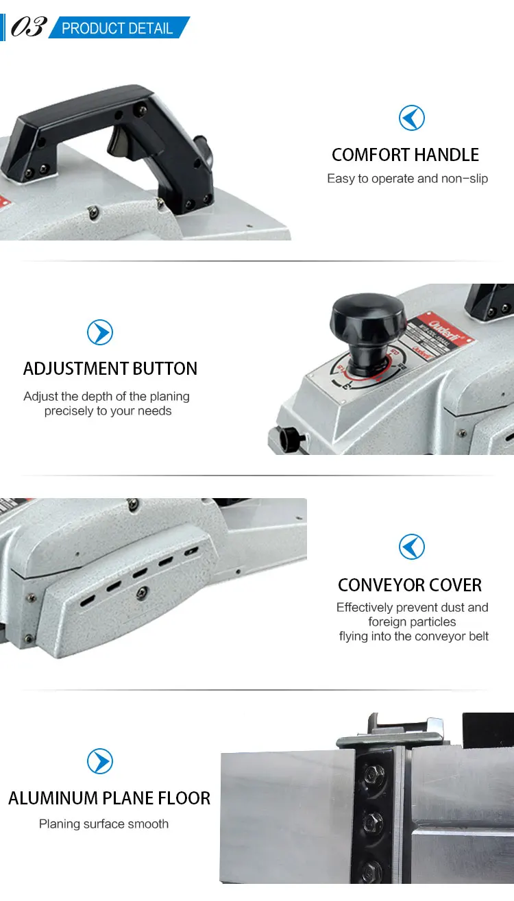 | Product name: | 960W woodworking power tools 136mm Electric Planer 1804AL; | Rated Input Power: | 960W; |