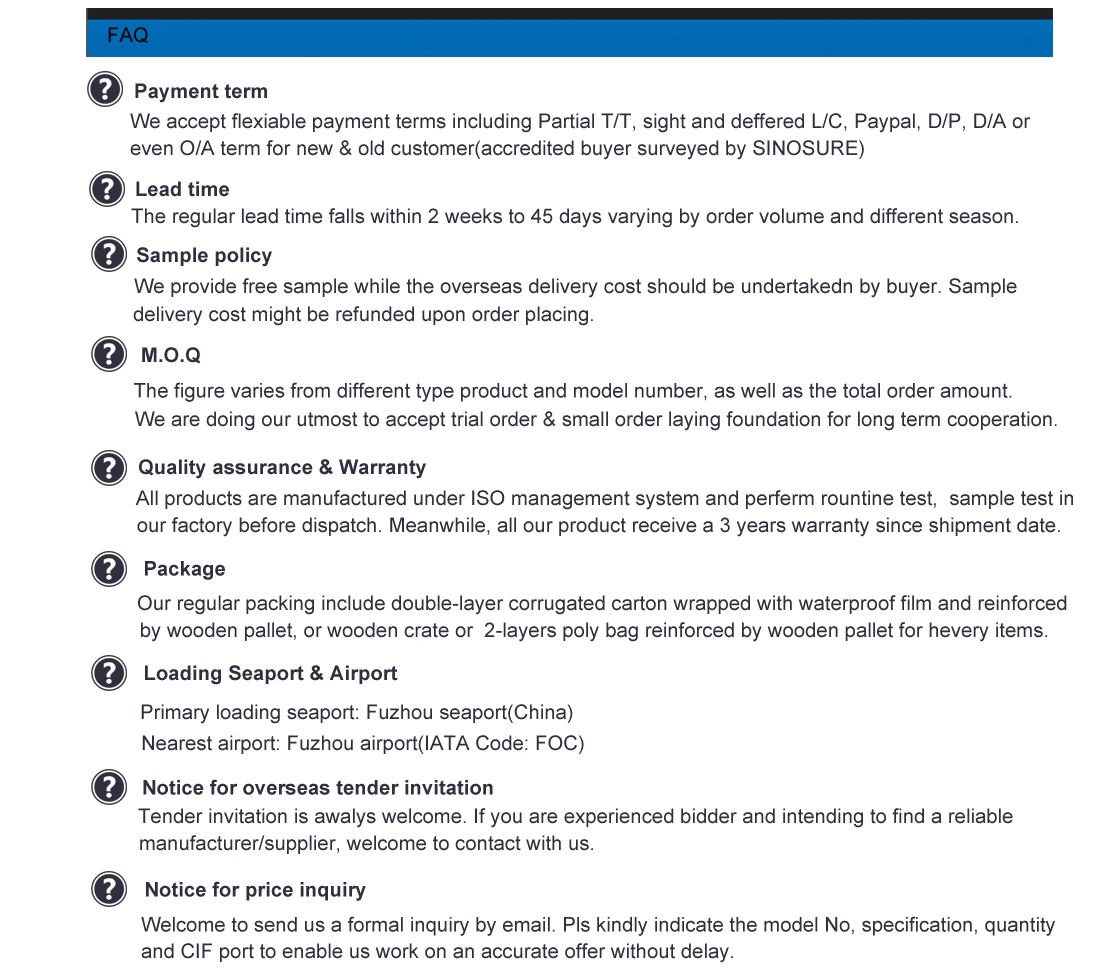 | Letter of credit, wire transfer, D.P., D.A. | Yes | Yes | fuzhou | IEC/BS/NEMA | brown/gray |