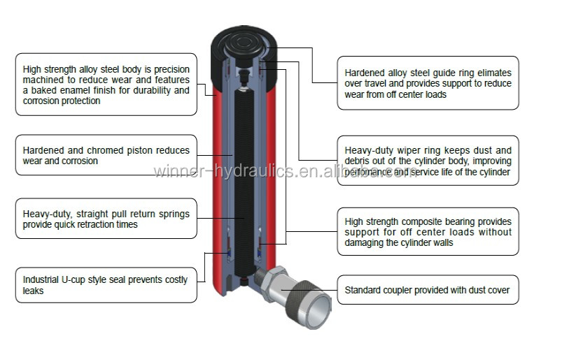 This universal single-acting cylinder has been widely used in automobile repair, lifting, mining and other mechanical fields.