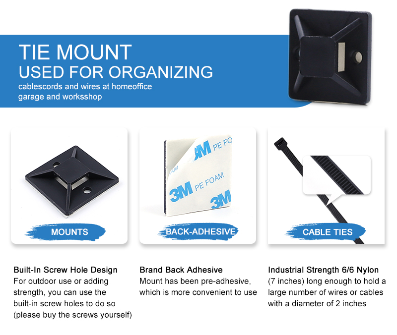| type: | Self-locking, adhesive tie mount | Packaging details: | Plastic bag packing or as per requirement. |
