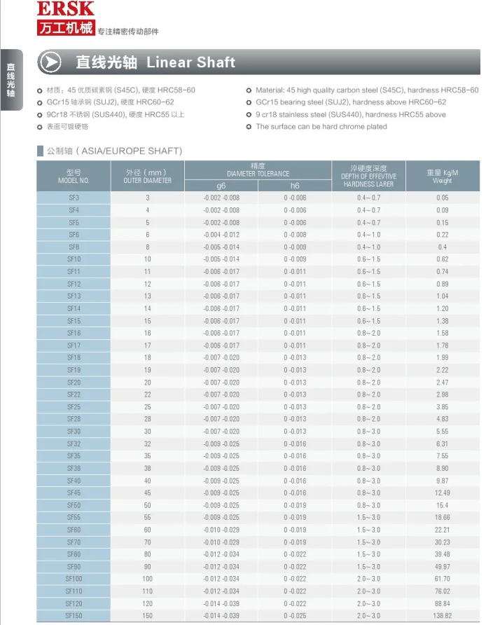 | Tolerance: | h7,g6,h6,f7; | Brand Name: | ERSK; |