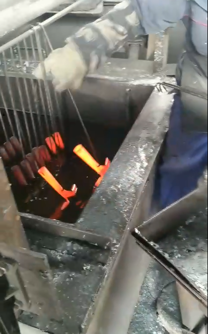 The blade is made of forged railway carbon steel plate and has been quenched and tempered heat treated.