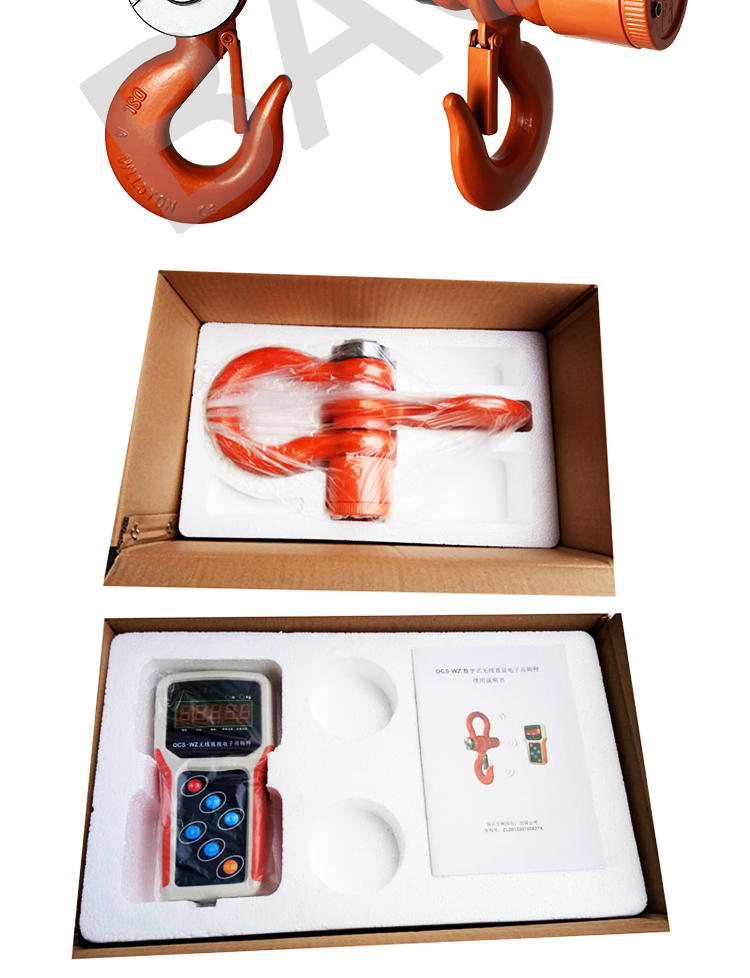 | product name: | Hot Selling 3000kg 5000kg Wireless Industrial Suspension Digital Crane Scale | Single piece packaging size: | 46X28X23cm |