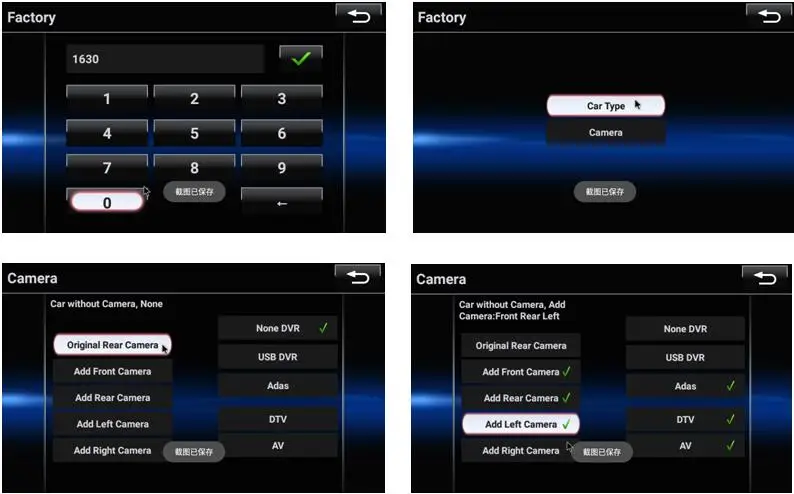 | Full plug and play: | yes; | 4 camera: | Front , Rear, Left-side , right-side; |