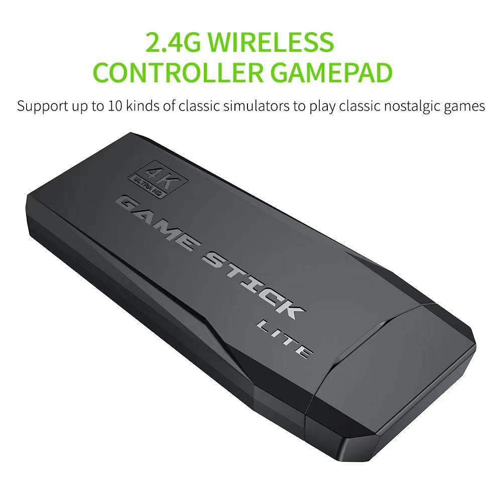Video Game Console 2.4G Dual Wireless Controller Game Stick 4K 10000 Games 64 32GB Retro Games for PS1/GBA Boys Christmas Gift Multiple Emulator Format: Suitable for ps1/atari/mame/sfc/fc/gba/gb/gbc /md supports emulators. Paired with dual wireless game controllers, it’s the icing on the cake. HD Output: Supports 4k Ultra HD TV video output (1080p/720p) as well as monitors and projectors with HDMI input. Supports downloading games: This game console supports players to search for games, customize their favorite games, and play and download games by themselves. Equipped with wireless dual joysticks to play all the exciting games, allowing you to enjoy the game more, allowing you to quickly recall and enjoy your childhood! If you need a game list, you can contact customer service to request a game list! 1. Game list, including ps1/atari/mame/sfc/fc/gba/gb/gbc/md emulator games, totaling (32G) 3000+/(64G) 10000+ games 2. Game history, game registration list, classification Press the game entry time 3. Game collection, you can use the START key for three seconds to collect or bookmark your favorite games 4. Game search, based on the complete English game or keyword query, the first Chinese letter matches the game query 5. Game settings, Key tone settings, view local files, restore default settings, system information, output settings 6. Smooth lines, simple and elegant design, plug and play, equipped with wireless handle, wireless control range up to 8 meters. Compared with the short-range wired handle, the wireless handle avoids being close to the TV and protects your eyes more effectively. Mini console with wireless handle. 7. Just connect the game console to the TV interface, connect the USB power supply cable to the game console, adjust the TV source to the corresponding high-definition channel to display the game list screen on the TV, and then put the handle on Battery-based remote control, plug and play, simple and elegant, easy to operate. 8. Packing size: 15*10*7cm 9. Weight: 380g 10. There is no charge for the product. To use, place two AA batteries into the handle. Packing list: 1*Game console 2*Wireless controller 1*Wireless signal receiver 1*USB charging cable 1*Memory card package (optional 32G/64G) 1*HD signal extension cable 1*English manual 1*Packaging color box