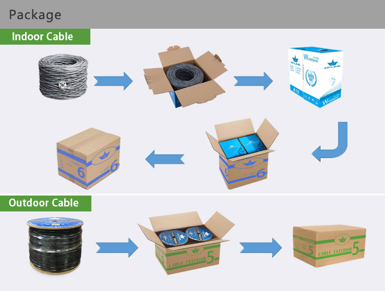 | Packaging details: | 305m/box, two boxes and one outer box. Or 305m one wooden roll, two rolls packed in one outer box. | application: | Telecom/CCTV/Computer |
