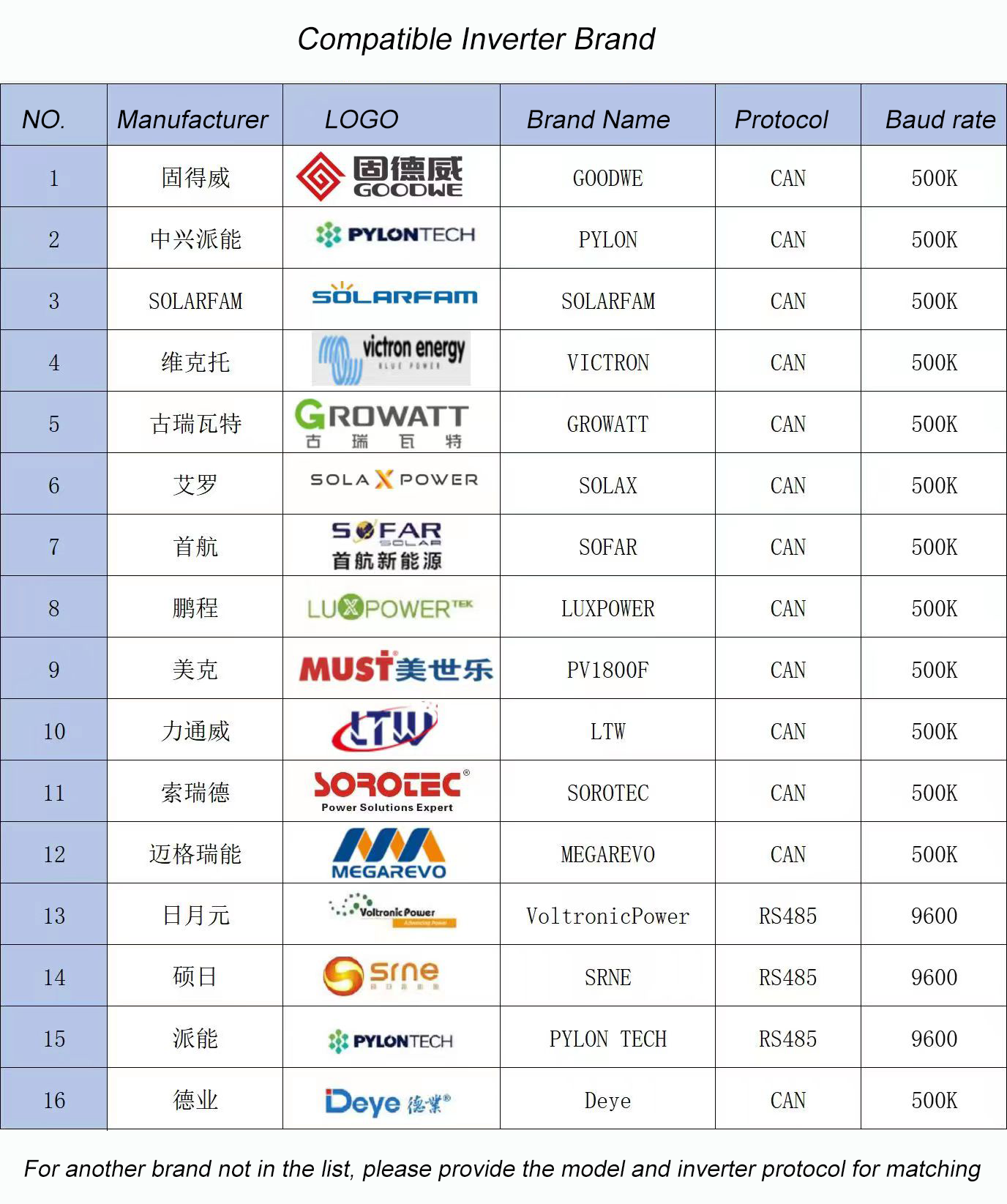 | Applicable batteries: | 16S1P 3.2V EVE 280Ah/304Ah, CATL 280Ah/302Ah | Recommended discharge current: | 140A |