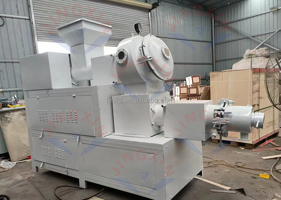 The bar soap machine consists of two single screw shaft machines, each with their own closed reduction drive system. The length-to-diameter ratio of the extended barrel and screw can reach 1:9, which can effectively squeeze the soap liquid and enhance the firmness of the soap liquid. The upper screw acts as a single conch, creating soap granules in a vacuum. The lower part is in the shape of a bar, and the soap particles are compressed and extruded through the mouth of the gun in the form of a soap bar.