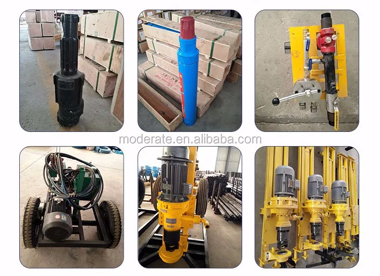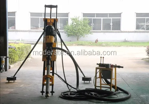 DTH pneumatic borehole drilling rig machine is widely used in mines,transportations,defense,water conservancy,rock engineer,especiaaly rugged terrain,which has low center of gravity,easy to fold and to move.Rotator reducer with high torque ensure operating reliable in the case of strong vibrations or heavy duty.The propulsion system equipped has relief valve for adjusting propulsion,to ensure excellent performance.Structure is simple ,easy to operate.