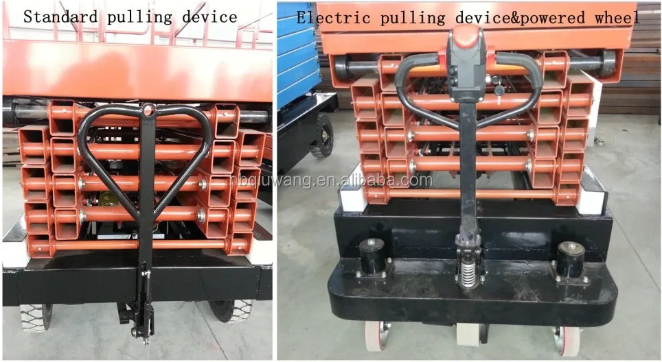 The follow is scissor type with manual pulling device: