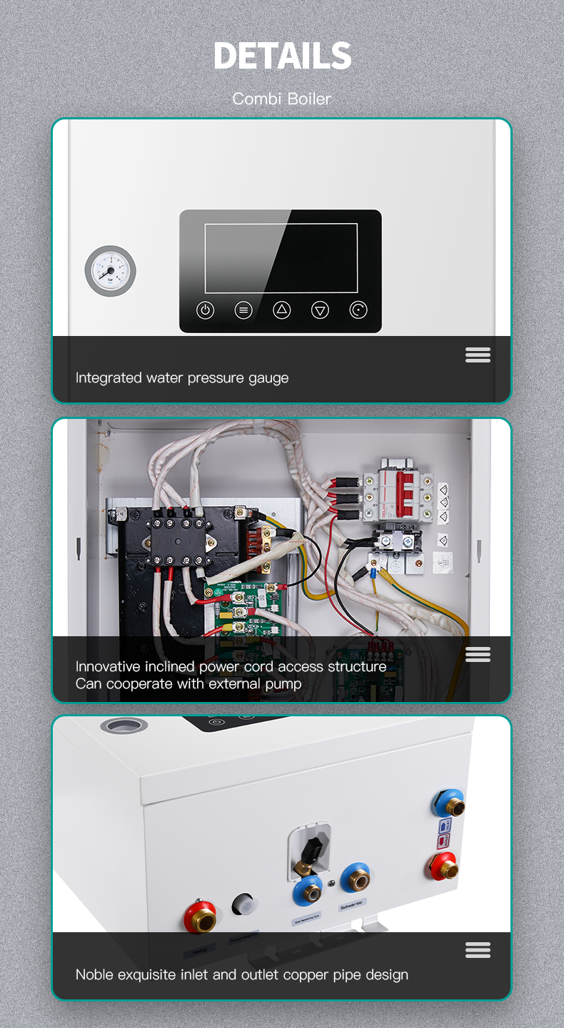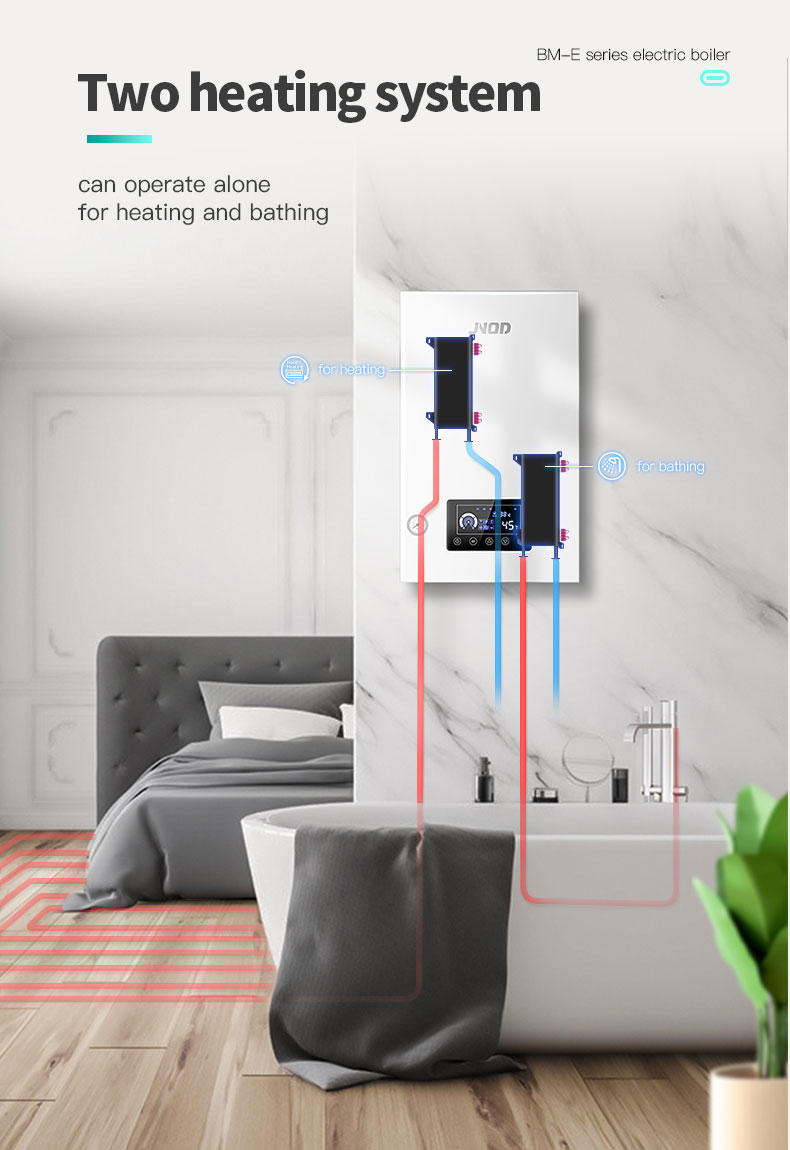 The BME series electric boilers are available in performance levels from 13kW to 26kW and are CE certified. It instantly provides convenient and reliable central heating and domestic hot water without the need for fossil fuels. WiFi control is possible by connecting to the room thermostat. Equipped with circulation pump and expansion tank, easy to install.