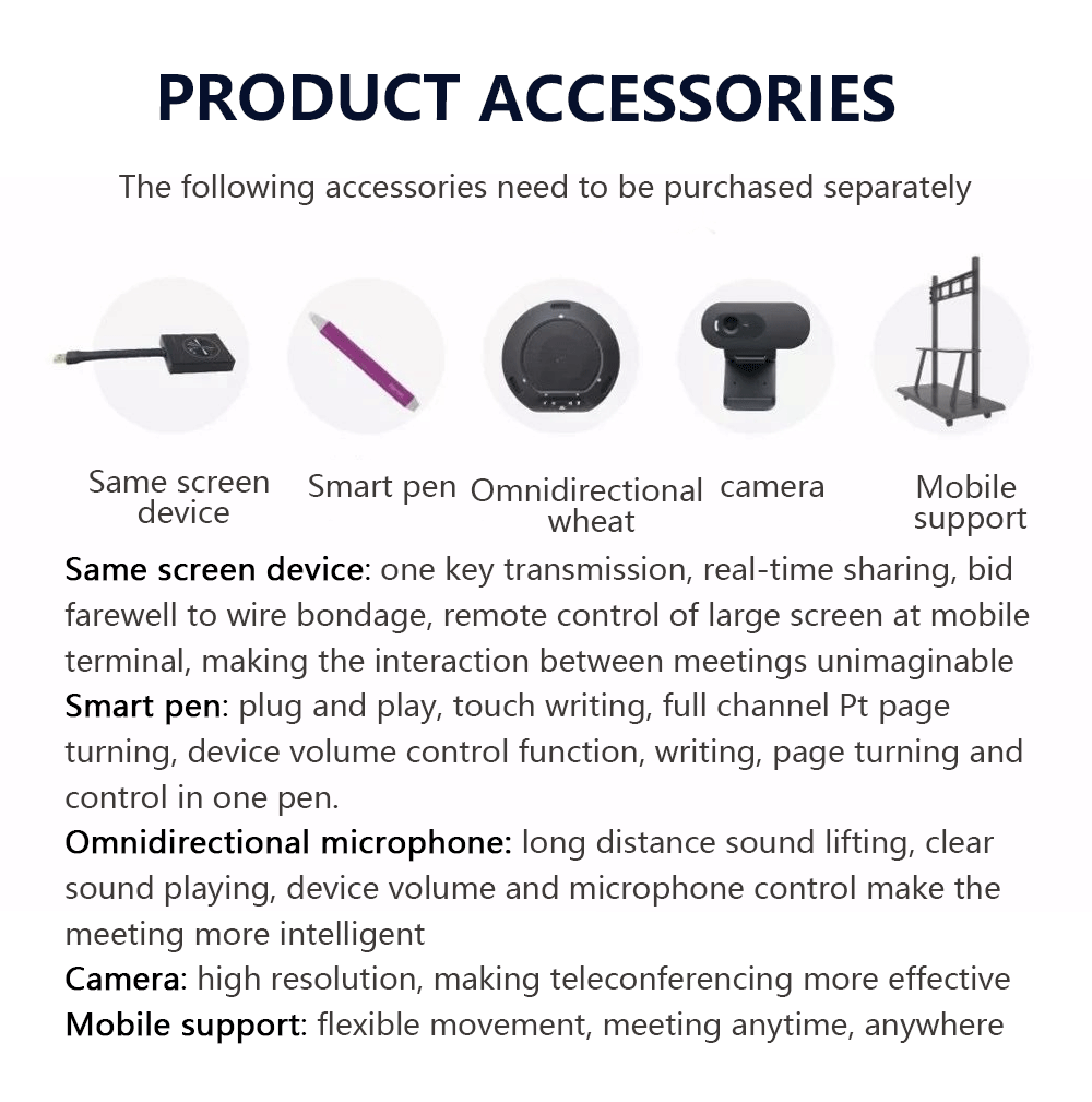This smart interactive whiteboard has exquisite image quality, 4K ultra-high-definition display, and rich and gorgeous colors.
