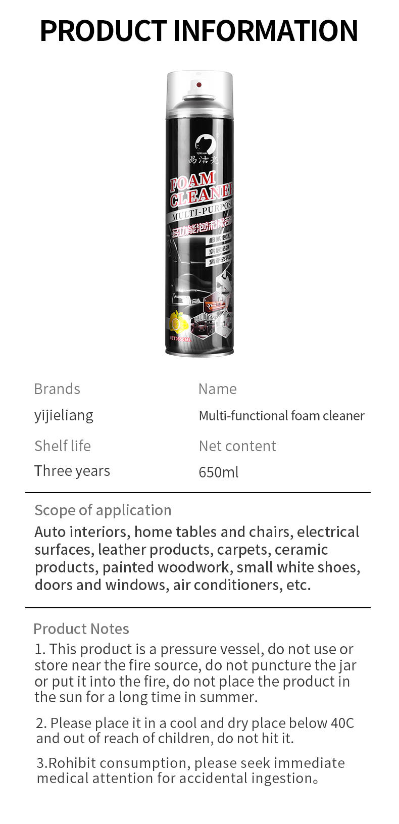 | Package: | 650ml*24pcs/carton | product name: | 650ml All-Purpose All-Purpose Foaming Cleansing Spray |