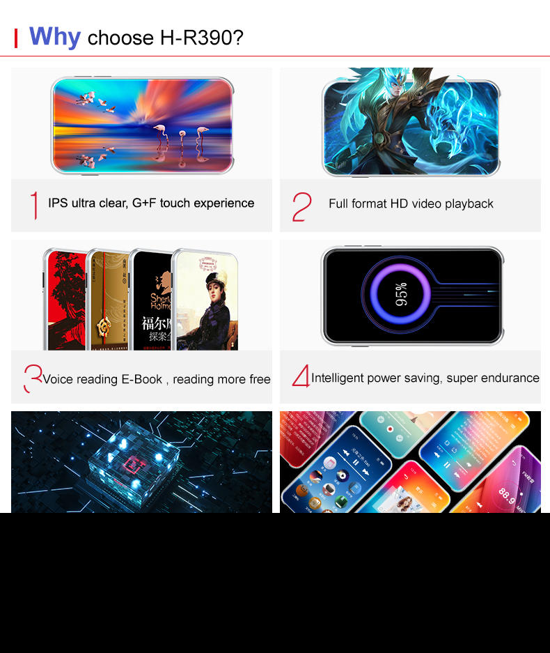 | Function: | Audio recorder, e-book reading, FM radio | Model: | H-R390 |