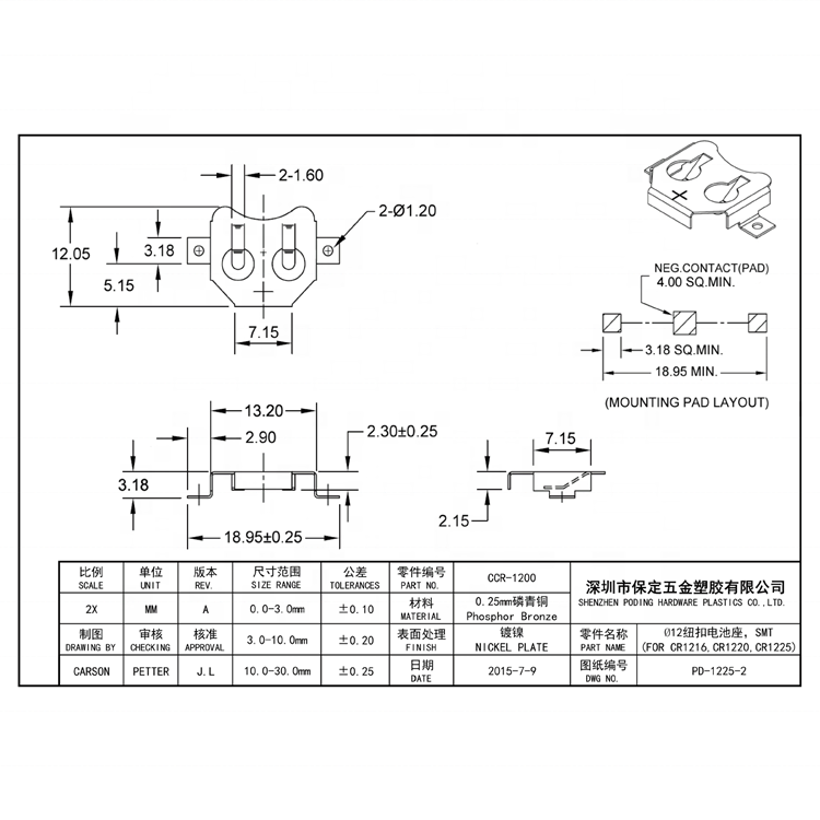 | product name: | 12MM button battery holder | model: | CCR-1200 |