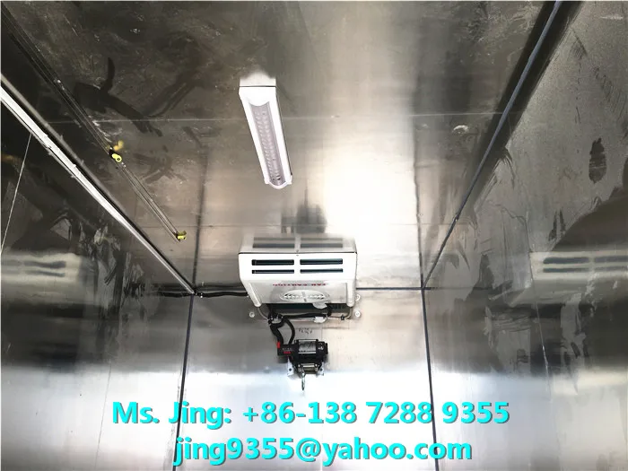 Configuration | Refrigerator unit is Huatai, made in China, working temperature is minus 15 celsius degree. The material of the van surface is FRP,8 cm thick PU inside. | ||