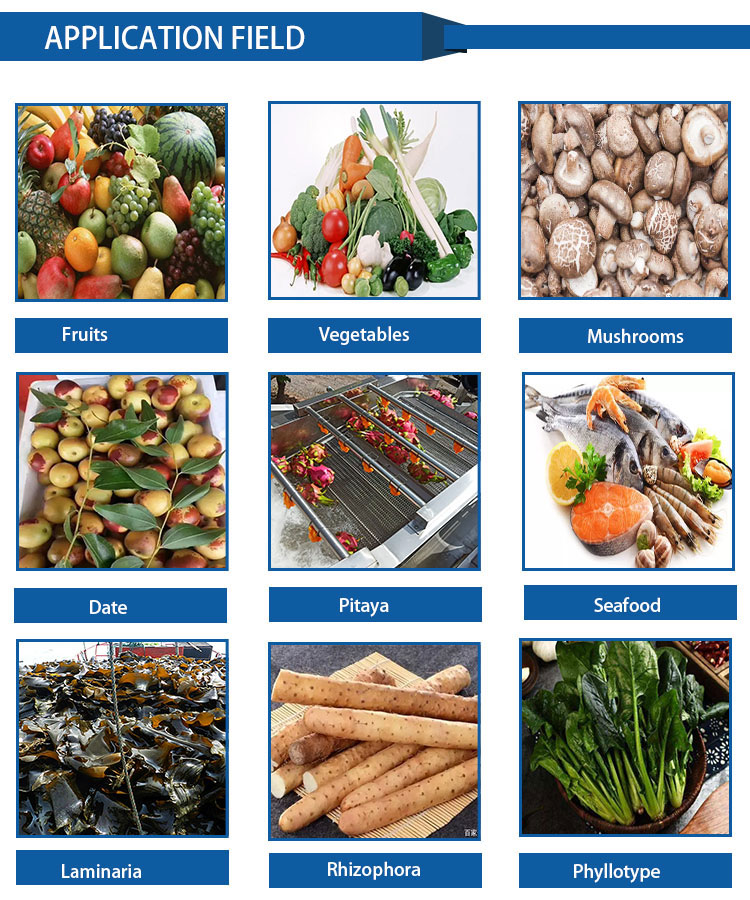 1. The cleaning machine uses surfing, bubbling, and spraying water to clean fruits and vegetables. It can thoroughly clean the dirt on the surface of fruits and vegetables. It can also add an appropriate amount of bactericidal reagent to wash away the impact of pesticide residues on fruits and vegetables. Surface of vegetables and fruits. 2. The vegetable cleaning machine is widely used to clean carrots, hawthorns, apples, citrus, mango, dates, red dates, tomatoes and other materials with high shape requirements. It is suitable for: vegetables, fruits, aquatic products and other granular, leafy and root products. and other products.