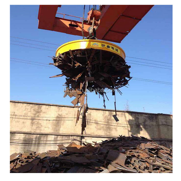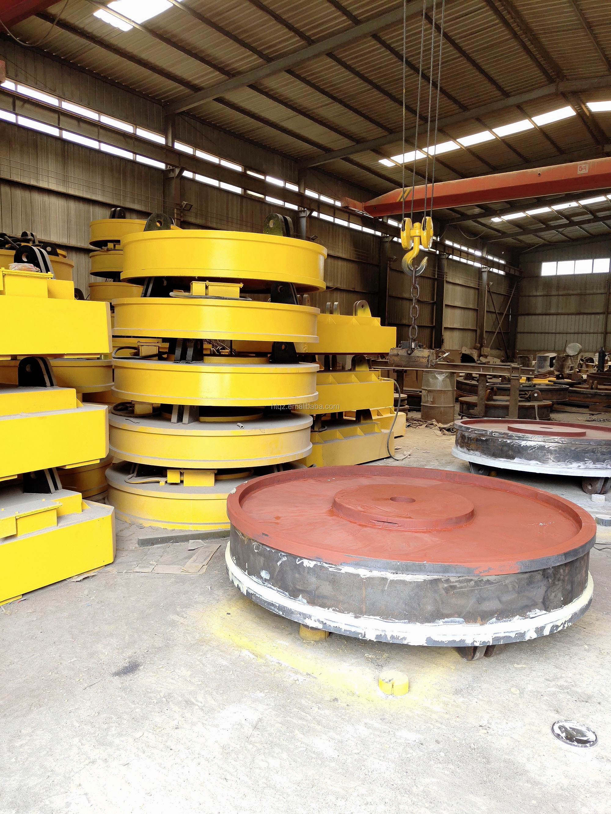 Round lifting magnets can handle a variety of scrap materials continuously throughout the day. They can lift steel faster and more easily than any other mechanical device. Suitable for transporting ingots, steel balls, metal and scrap steel.